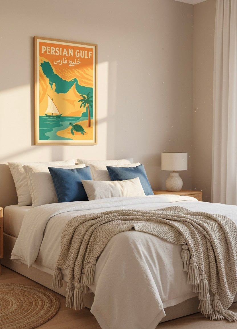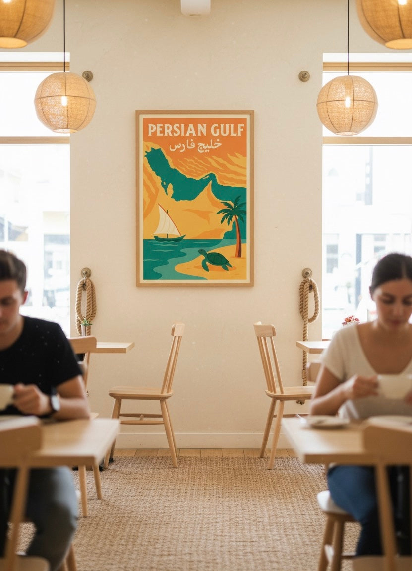 Cultural Heritage: This isn't just wall décor, it's a window into Persian maritime history, a celebration of coastal beauty, and a bridge between cultures. The warm coastal palette and serene nautical elements make it an ideal centerpiece for beach houses, coastal condos, or any space that celebrates life by the water. Whether you're decorating your first apartment, creating a gallery wall of travel memories, furnishing a seaside retreat, or searching for the perfect gift for someone special, this Persian Gulf print brings the legendary beauty and cultural significance of Iran's coastal heritage into any space.