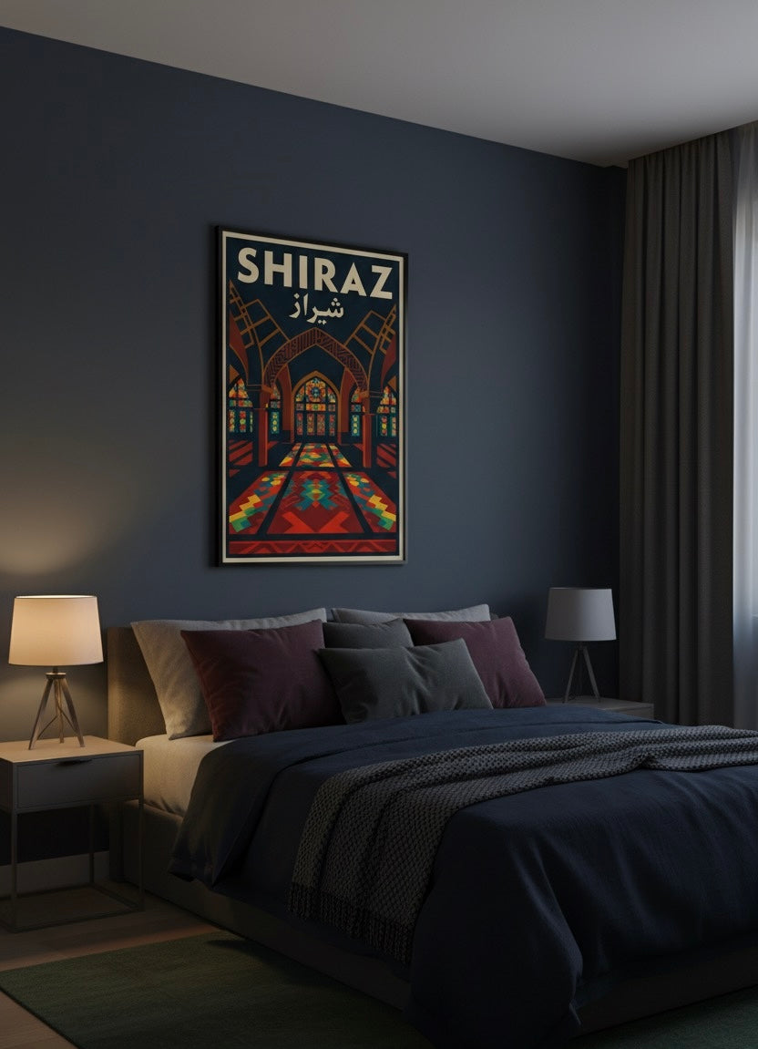 Cultural Heritage: This isn't just wall décor, it's a window into Iran's spiritual and artistic soul reimagined through the lens of Art Deco modernism. Shiraz, the city of poets and roses, home to the tombs of Hafez and Saadi, represents the very essence of Persian culture. Whether you're decorating your first apartment, creating a gallery wall of travel memories, or searching for the perfect gift for someone special, this Shiraz print brings the beauty and mysticism of Persian heritage into any space with contemporary geometric flair.